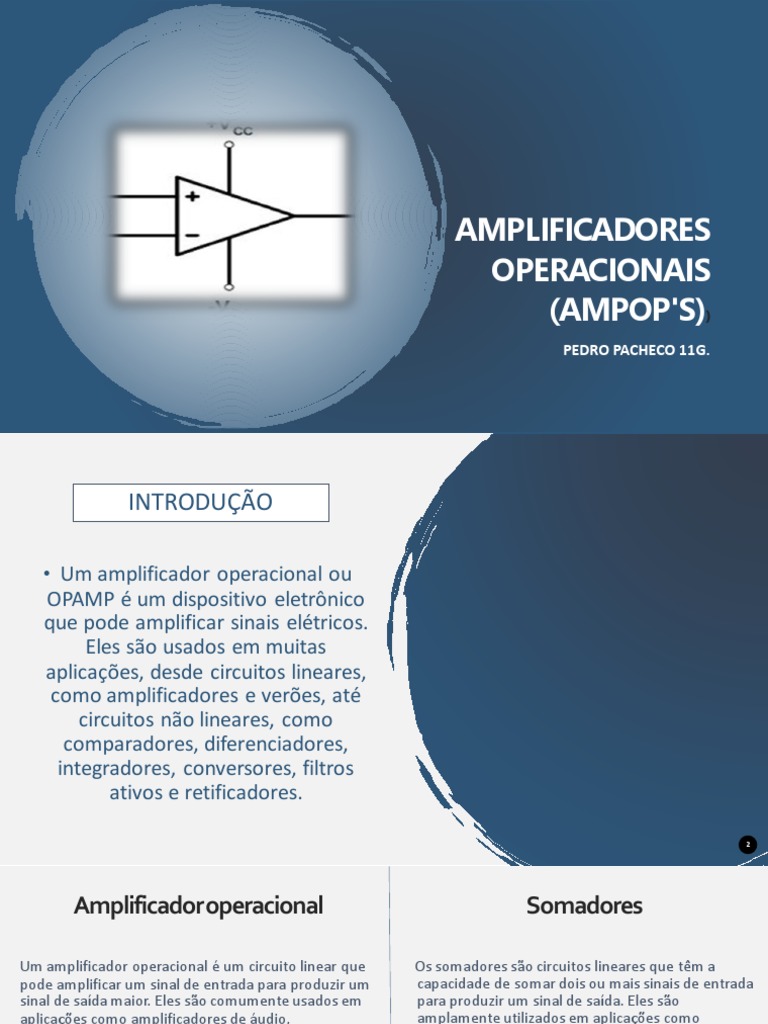 Um amplificador operacional é um circuito linear que Os somadores são circuitos lineares que têm a
