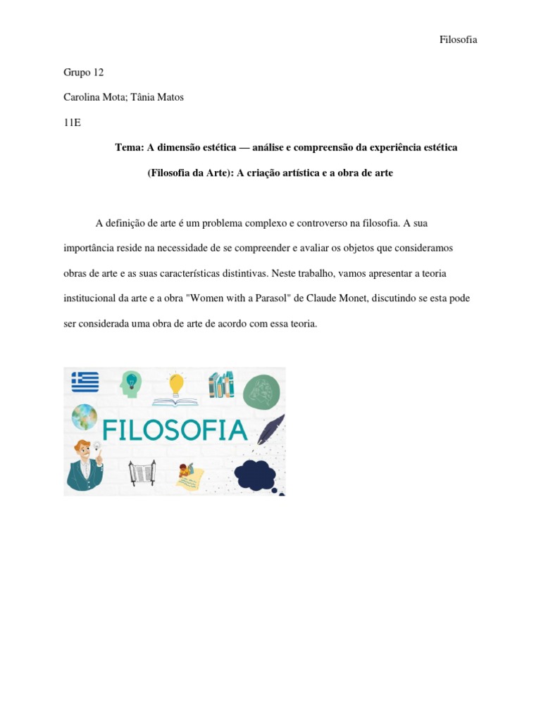Neste trabalho, apresentamos a teoria institucional da arte e a obra "Women with a Parasol" de