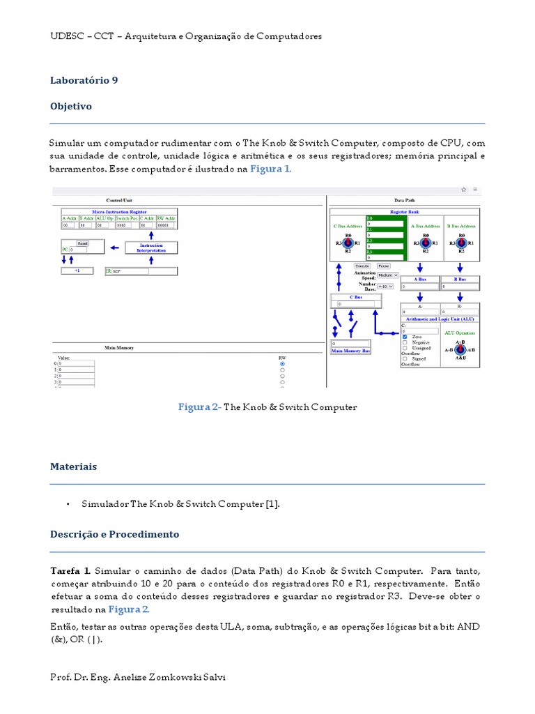 Tarefa 1. Simular o caminho de dados (Data Path) do Knob & Switch Computer. Para tanto,
