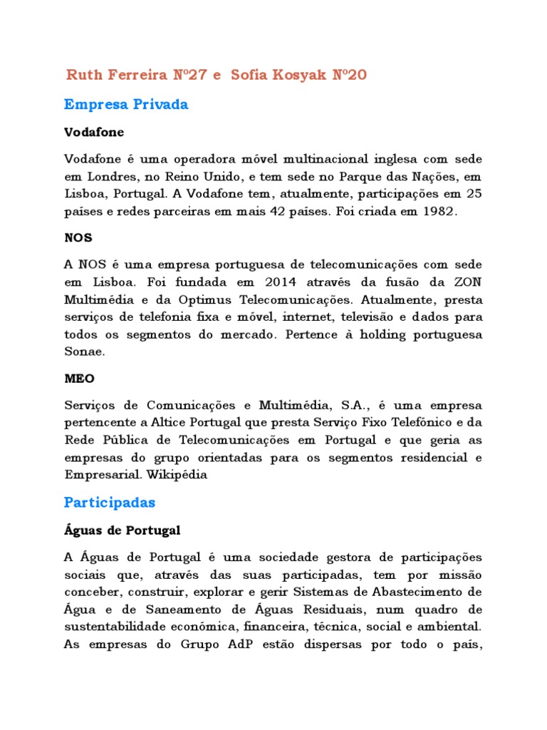 pertencente a Altice Portugal que presta Serviço Fixo Telefónico e da