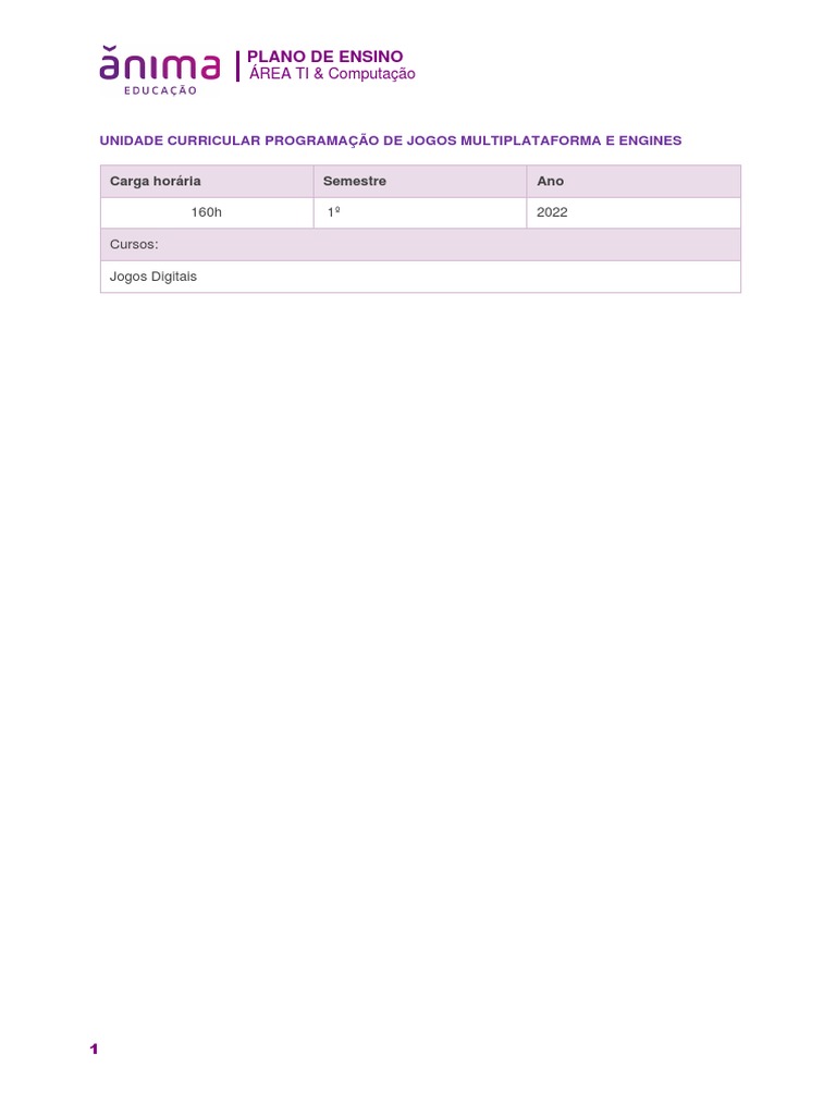 UNIDADE CURRICULAR PROGRAMAÇÃO DE JOGOS MULTIPLATAFORMA E ENGINES