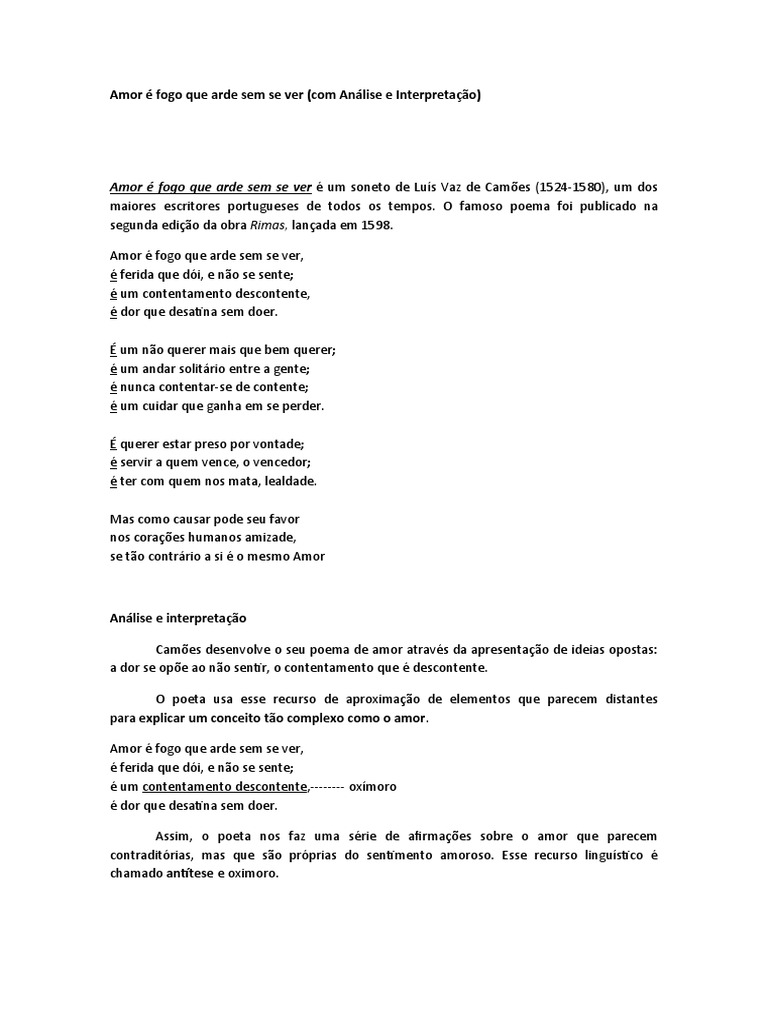 Amor é fogo que arde sem se ver (com Análise e Interpretação)