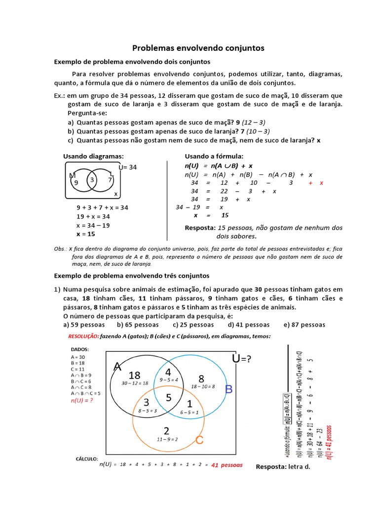Para resolver problemas envolvendo conjuntos, podemos utilizar, tanto, diagramas,