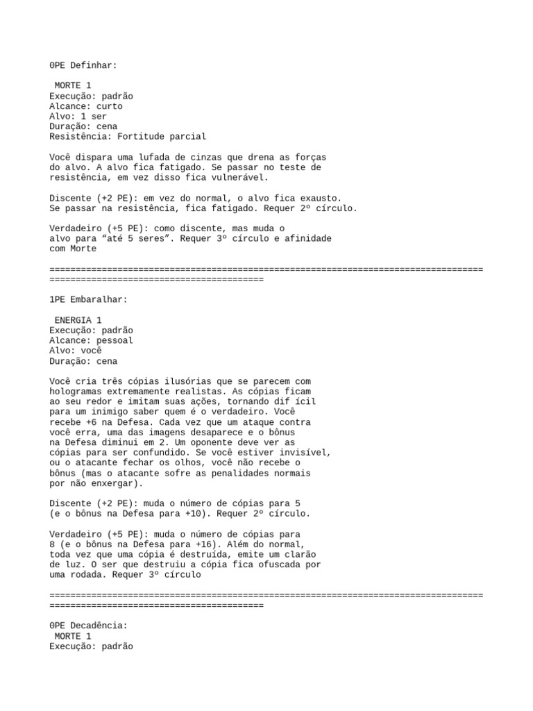 Discente (+3 PE): muda a resistência para “nenhu#ma”. Como parte da execução do