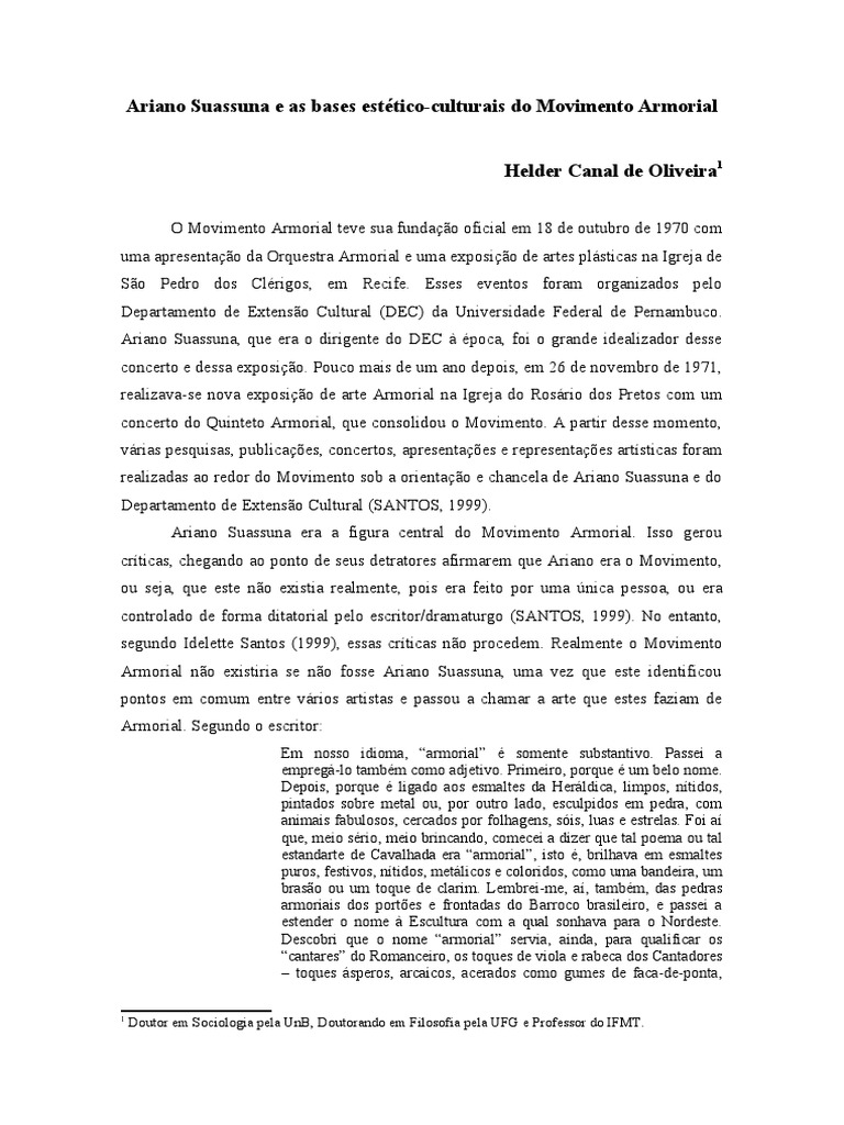 Suassuna para a configuração de seu conceito de cultura e arte Armoriais. Sendo assim,