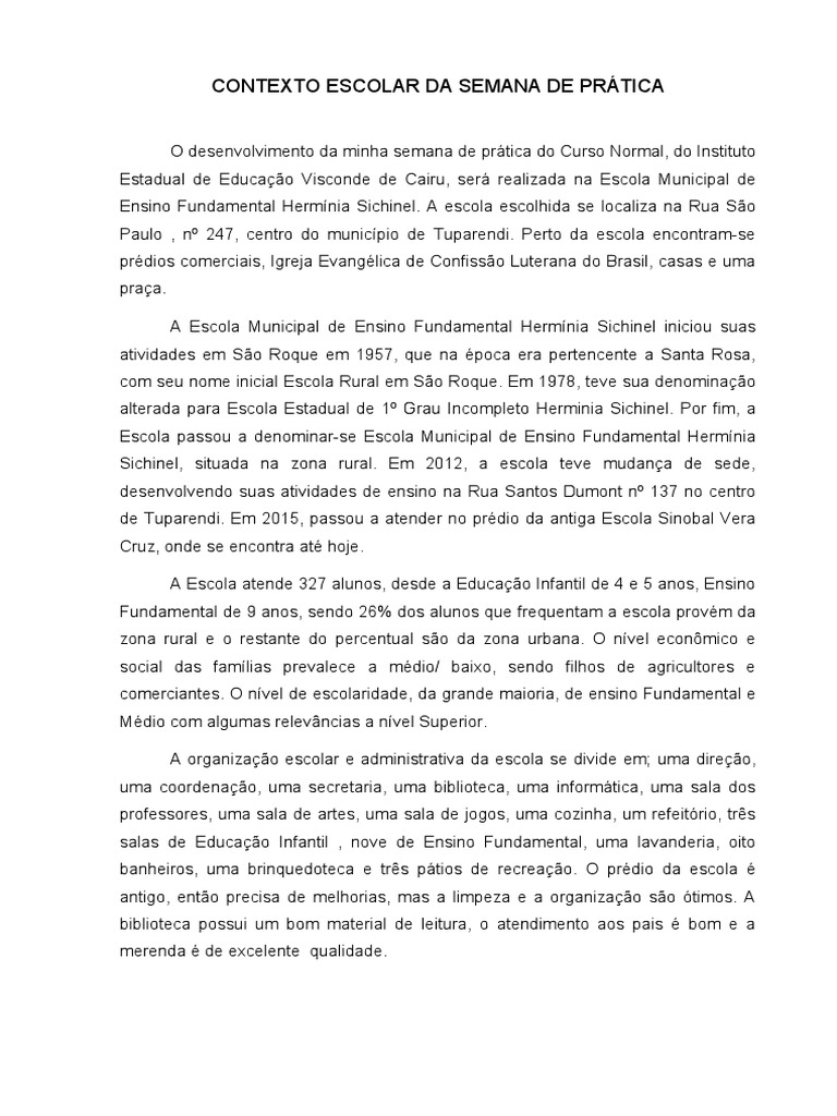 CONTEXTO ESCOLAR DA SEMANA DE PRÁTICA