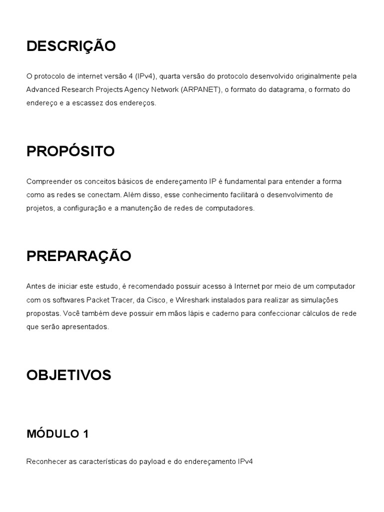 poderá ver a importância do protocolo IPv4 para permitir a comunicação das aplicações de rede.