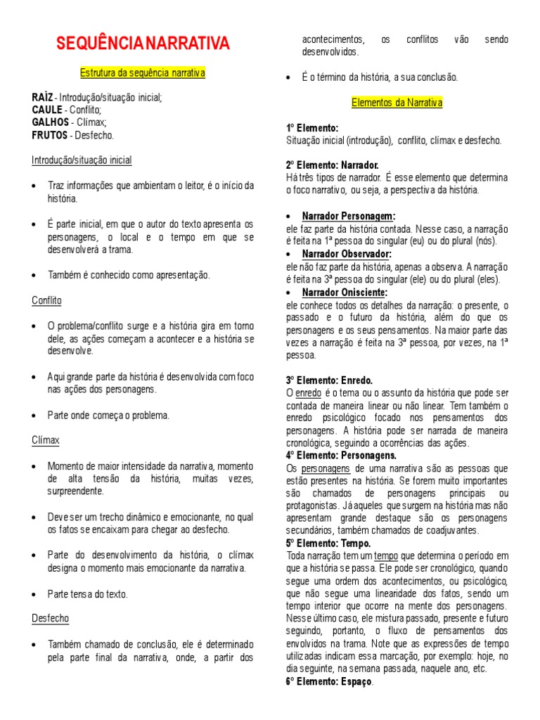 SEQUÊNCIA NARRATIVA acontecimentos,