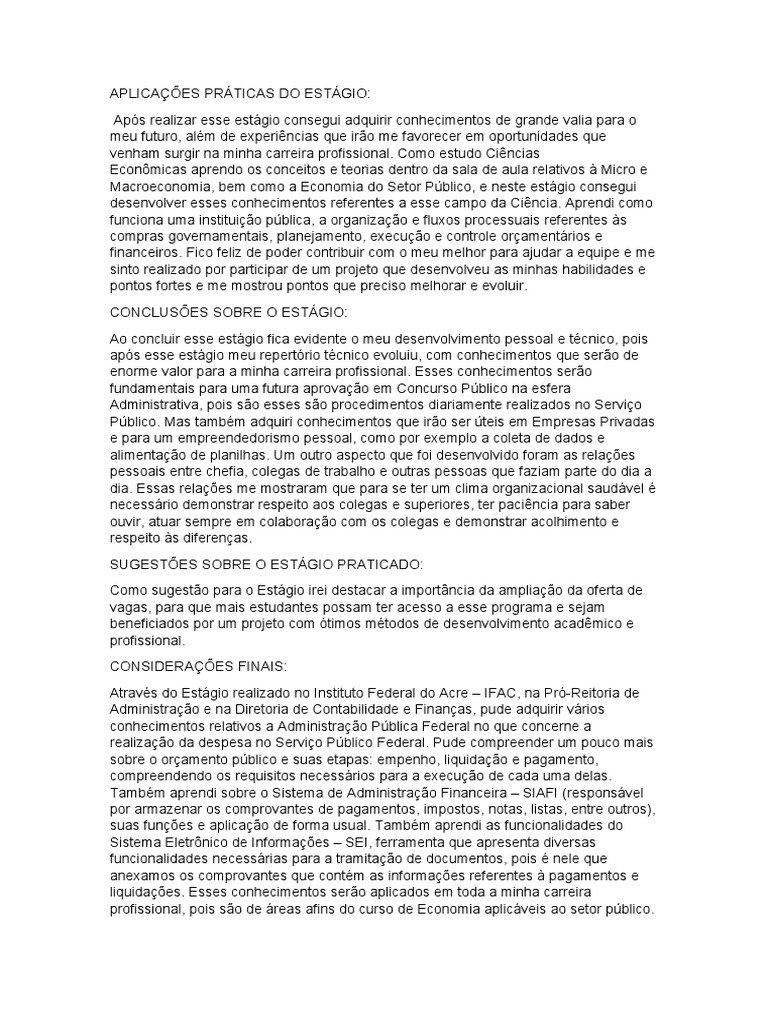 CONCLUSÕES SOBRE O ESTÁGIO: