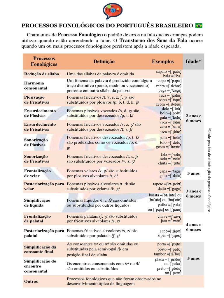 Chamamos de Processo Fonológico o padrão de erros na fala que as crianças podem