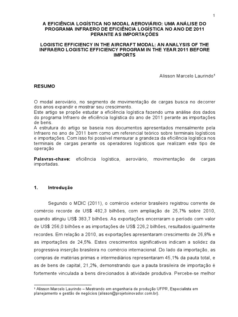 1Alisson Marcelo Laurindo – Mestrando em engenharia de produção UFPR, Especialista em