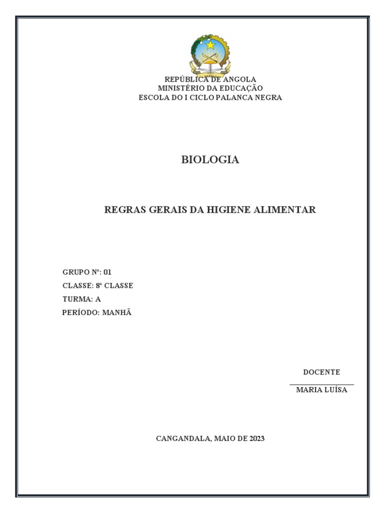 neste trabalho falaremos de Regras Gerais da Higiene Alimentar.