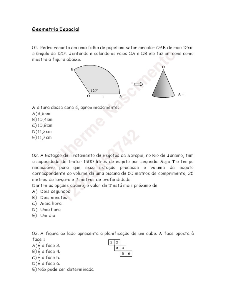 e ângulo de 120o. Juntando e colando os raios OA e OB ele faz um cone como