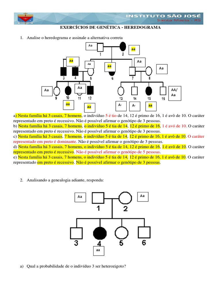 EXERCÍCIOS DE GENÉTICA - HEREDOGRAMA