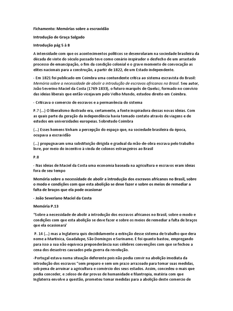 Fichamento: Memórias sobre a escravidão