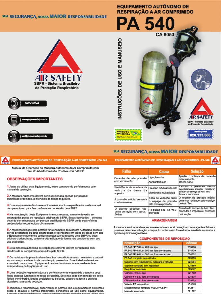 EQUIPAMENTO AUTÔNOMO DE RESPIRAÇÃO A AR COMPRIMIDO - PA 540 EQUIPAMENTO AUTÔNOMO DE RESPIRAÇÃO A AR COMPRIMIDO - PA 540 R