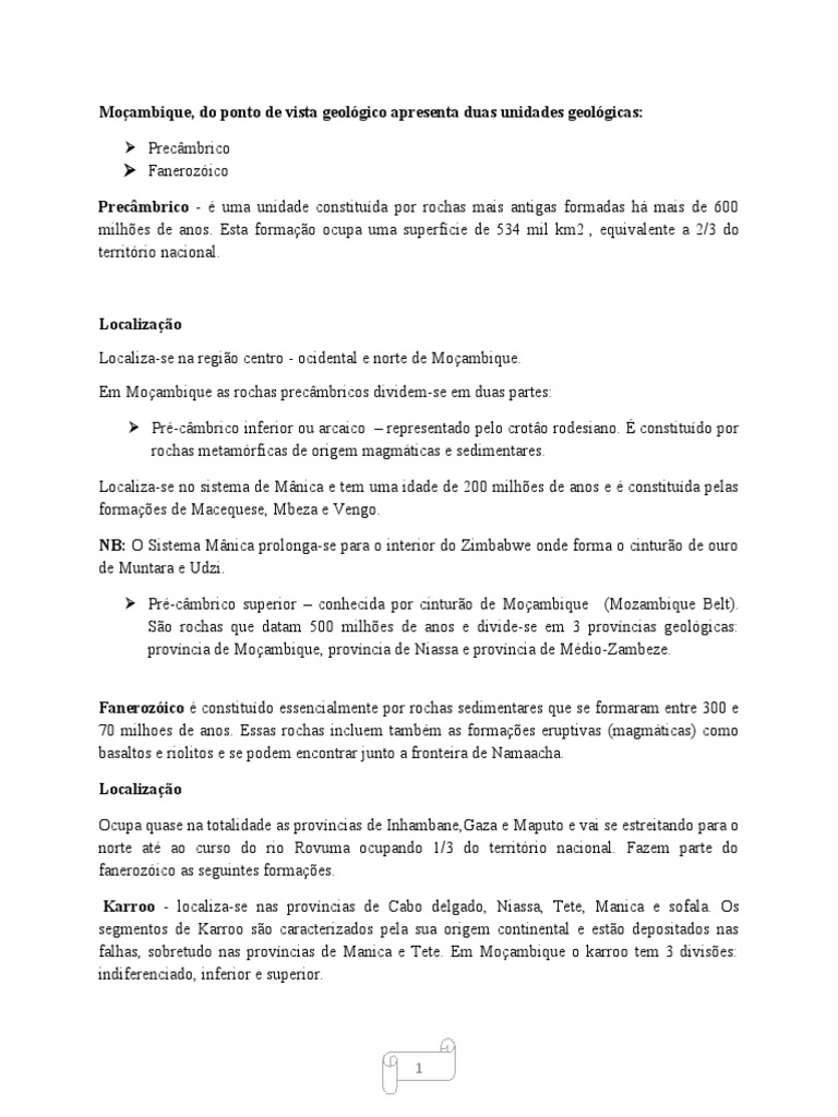 Moçambique, do ponto de vista geológico apresenta duas unidades geológicas: