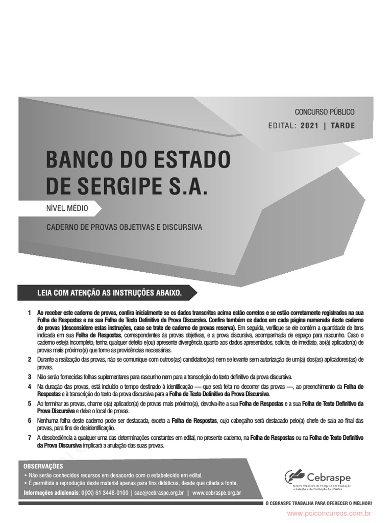 Instruções para Provas do Concurso BANESE