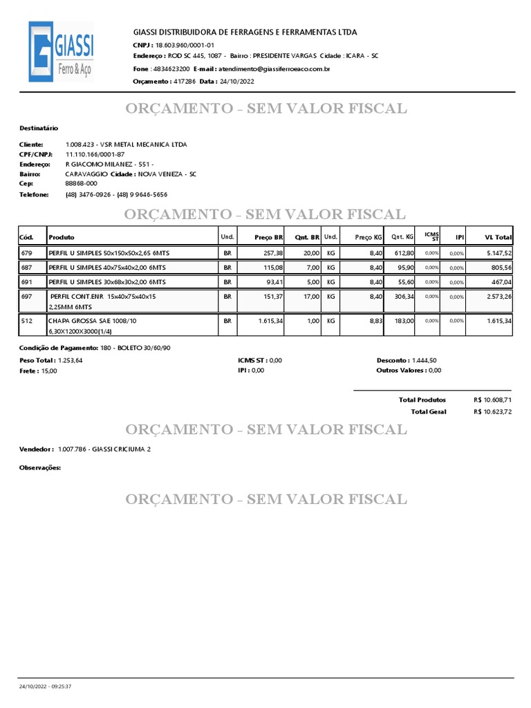 Orçamento : 417286 Data : 24/10/2022
