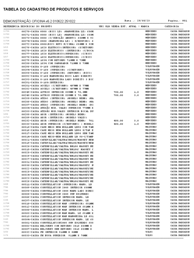 DEMONSTRAÇÃO OFICINA v6.2 010622 251022 Data .: 29/05/23 Pagina.: 001