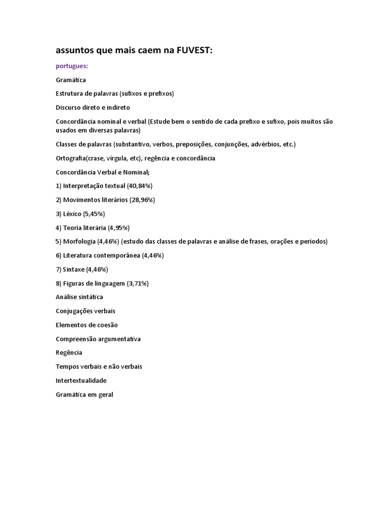assuntos que mais caem na FUVEST: