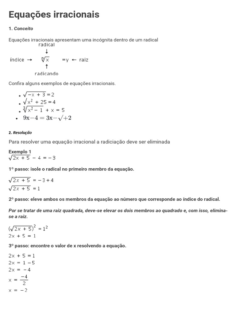 Para resolver uma equação irracional a radiciação deve ser eliminada