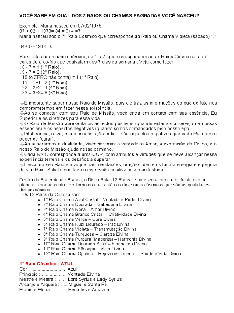 VOCÊ SABE EM QUAL DOS 7 RAIOS OU CHAMAS SAGRADAS VOCÊ NASCEU?