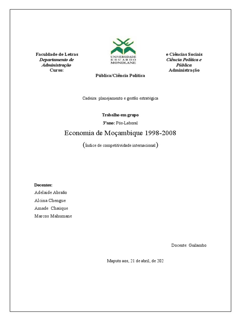 econômica de Moçambicano nos anos de 1998 até 2008.