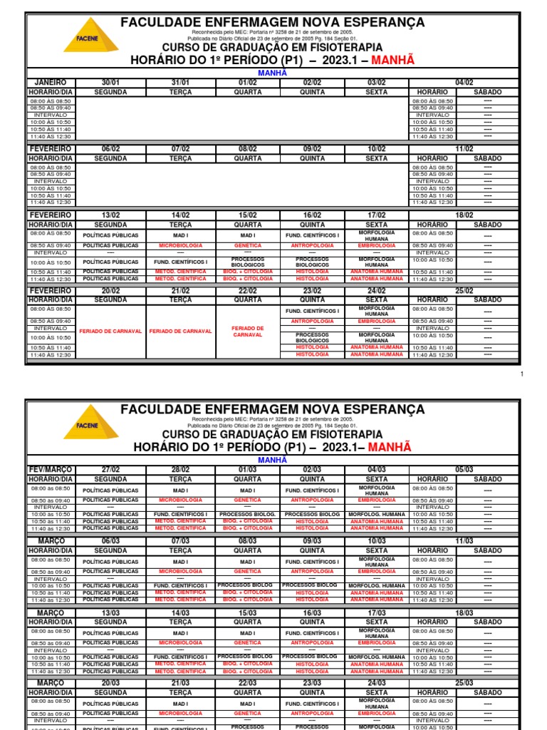 HORÁRIO DO 1º PERÍODO (P1) – 2023.1 – MANHÃ
