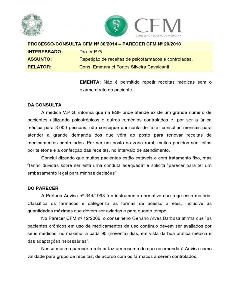 PROCESSO-CONSULTA CFM Nº 30/2014 – PARECER CFM Nº 20/2018