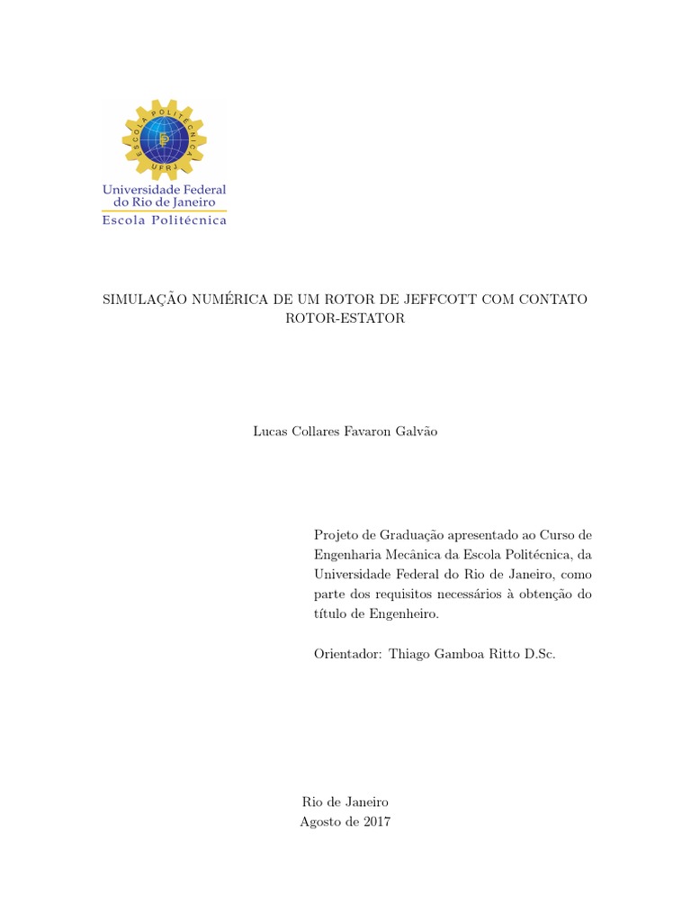 Palavras-chave: Rotor dynamicas, Numeric Methods, Vibrations