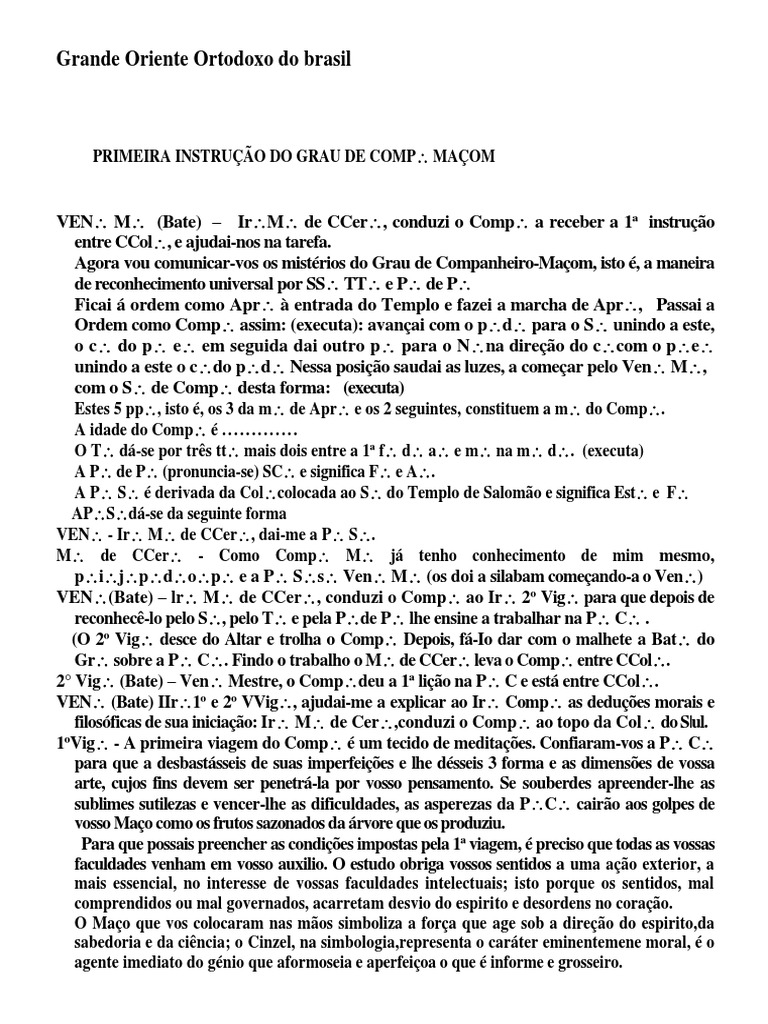 PRIMEIRA INSTRUÇÃO DO GRAU DE COMP MAÇOM