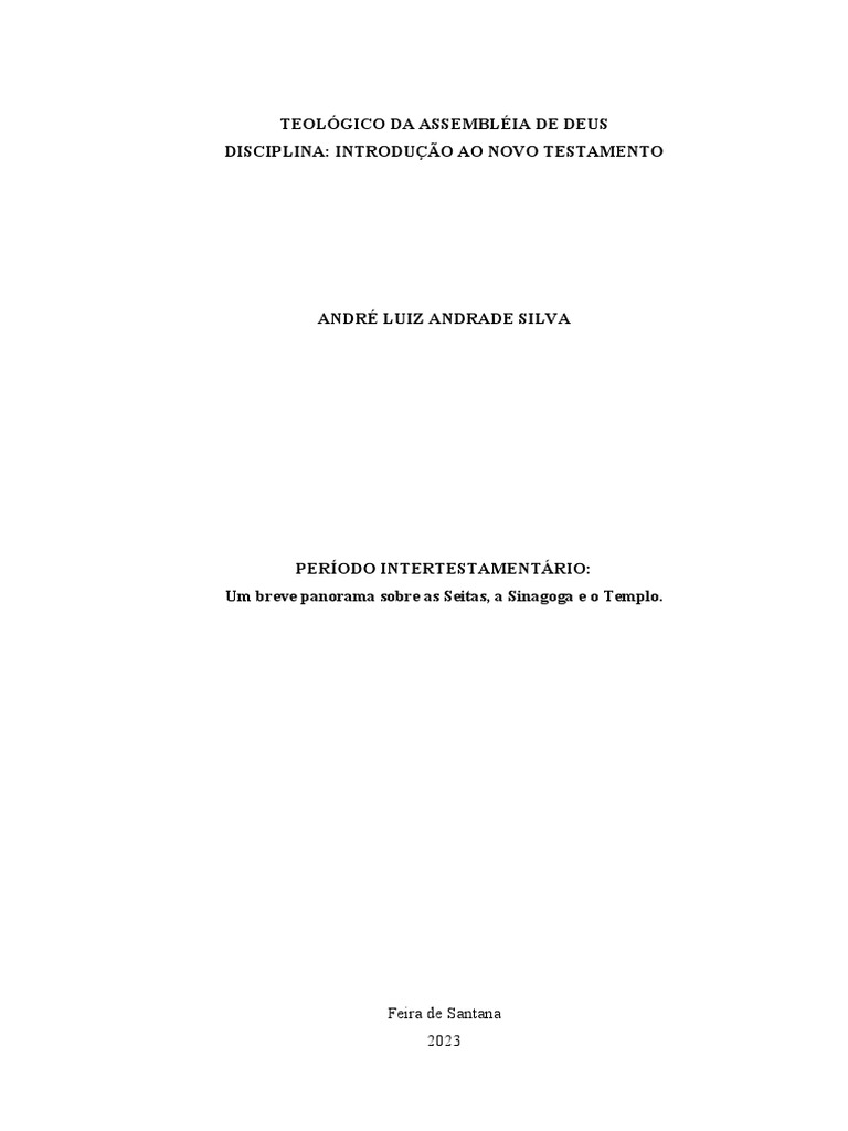 DISCIPLINA: INTRODUÇÃO AO NOVO TESTAMENTO