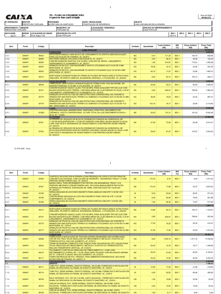 4.0.5. SINAPI 93186 M 8,30 63,92 BDI 1 80,87 671,22