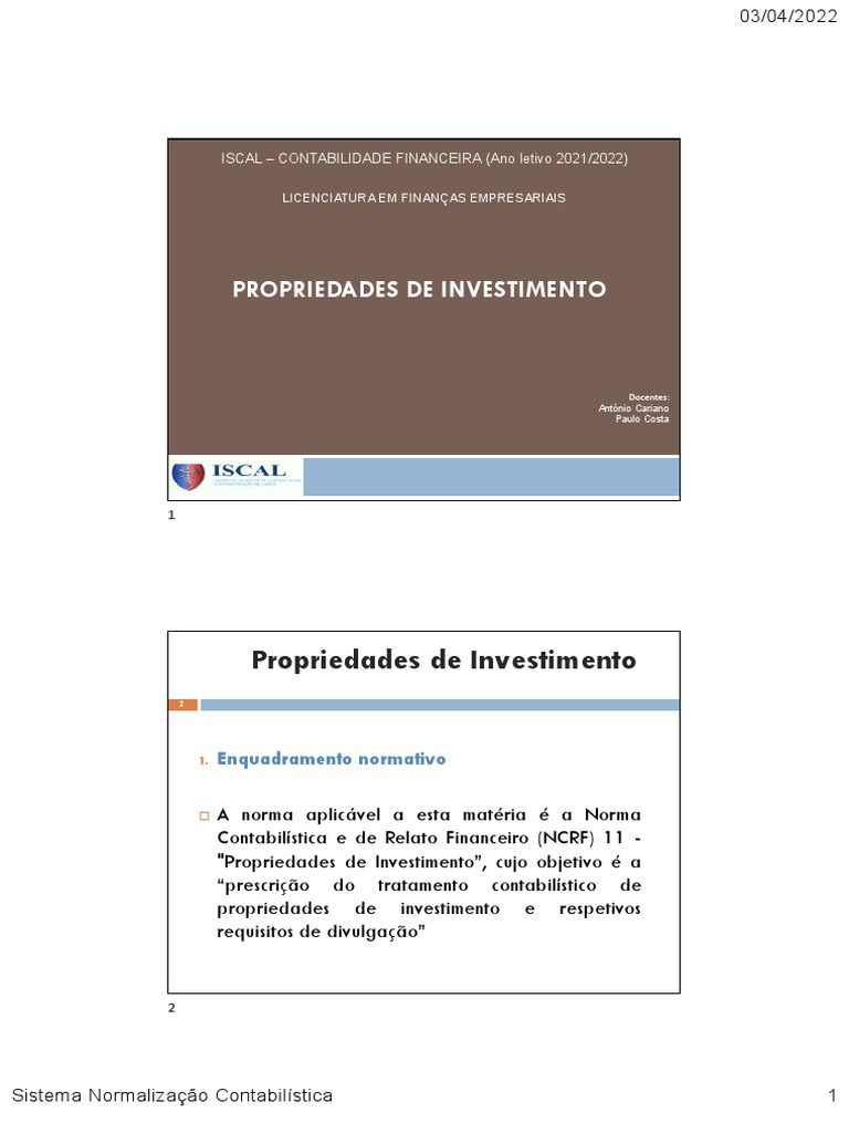 propriedades de investimento e respetivos