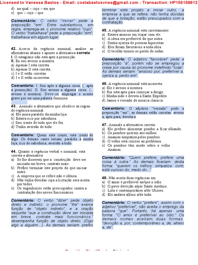 44. Quanto à regência verbal e nominal, está
