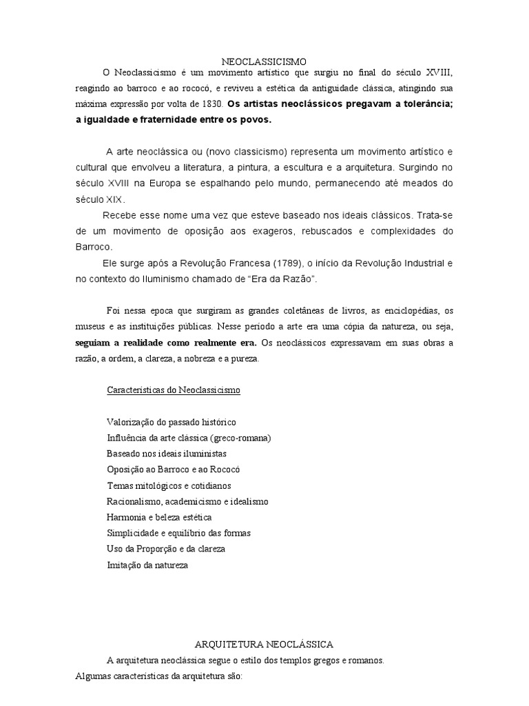 O Neoclassicismo é um movimento artístico que surgiu no final do século XVIII,