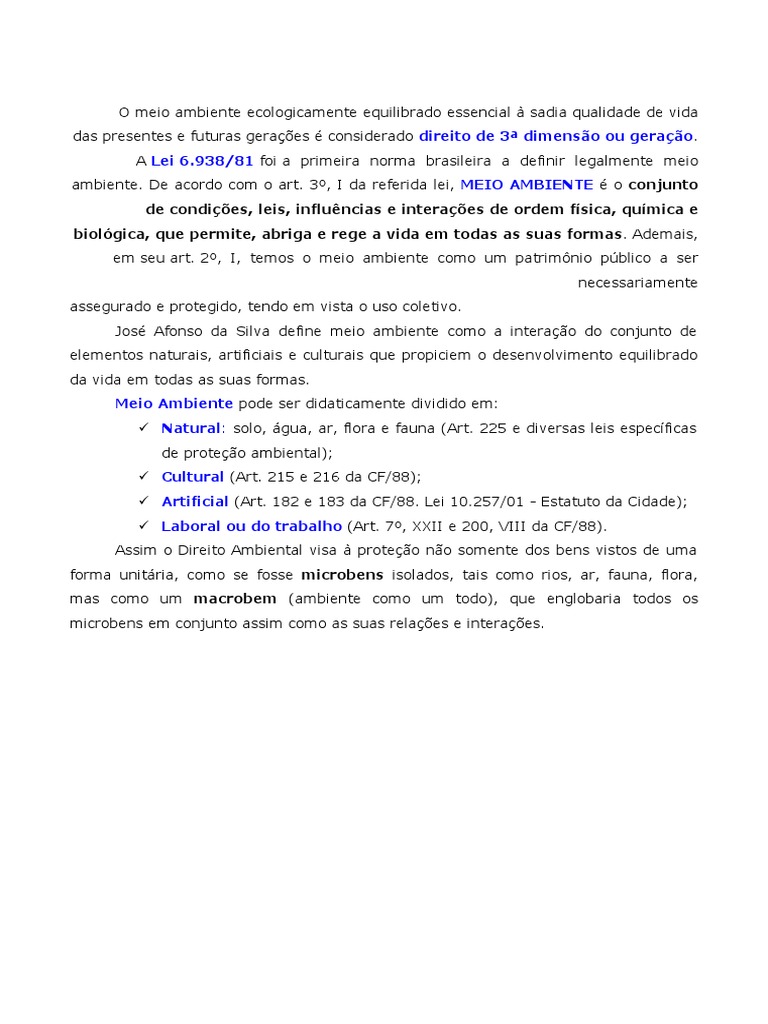 A Lei 6.938/81 foi a primeira norma brasileira a definir legalmente meio