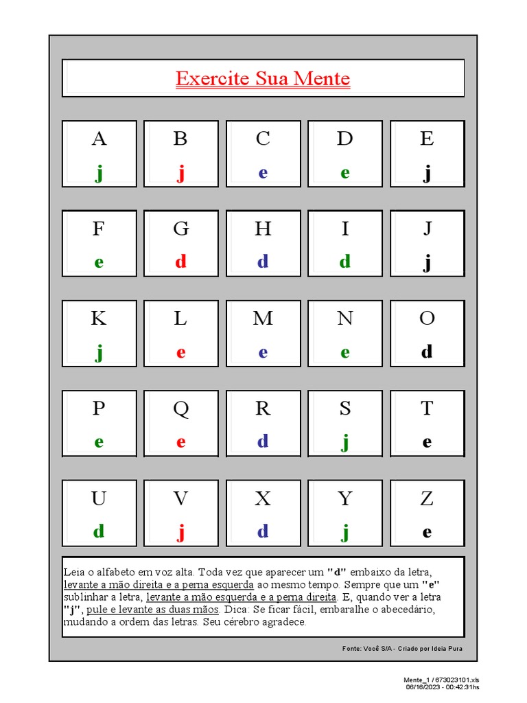 "j", pule e levante as duas mãos. Dica: Se ficar fácil, embaralhe o abecedário,