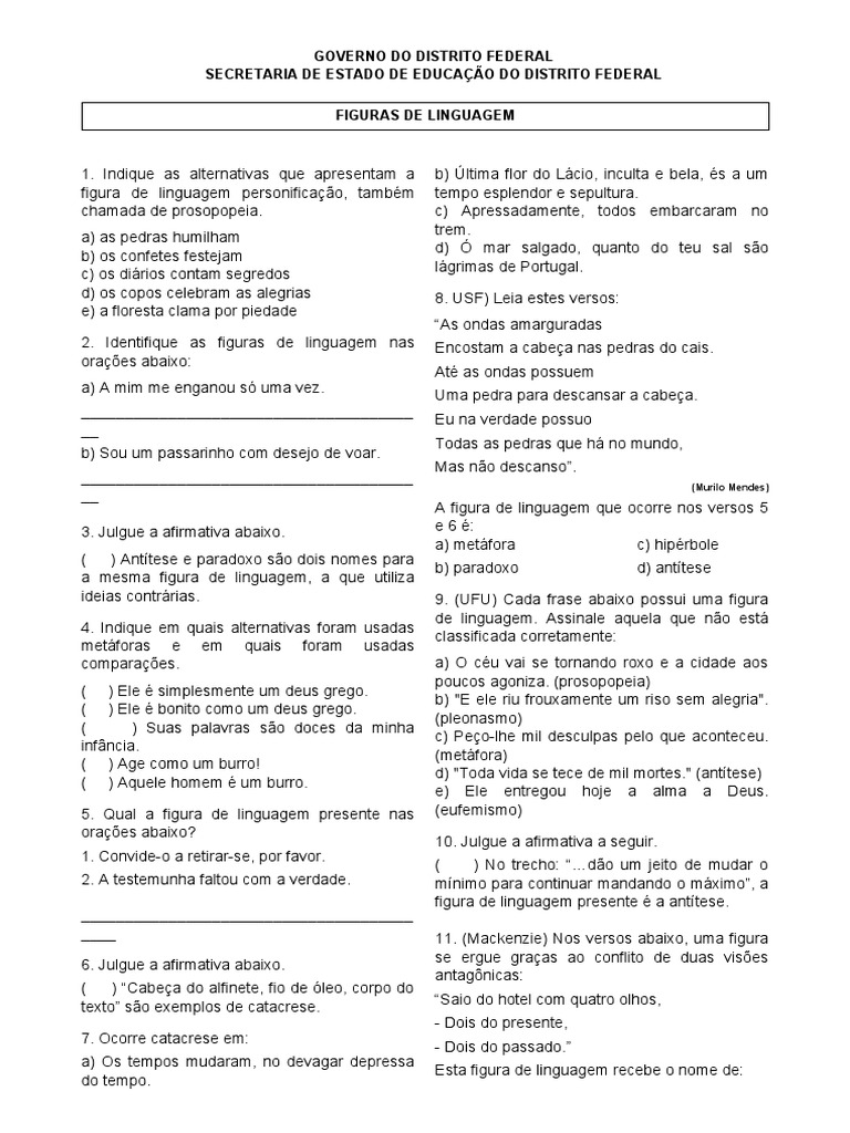 ____ 11. (Mackenzie) Nos versos abaixo, uma figura