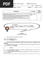 12. No seguinte trecho “Tu és a chuva e eu sou frases abaixo: