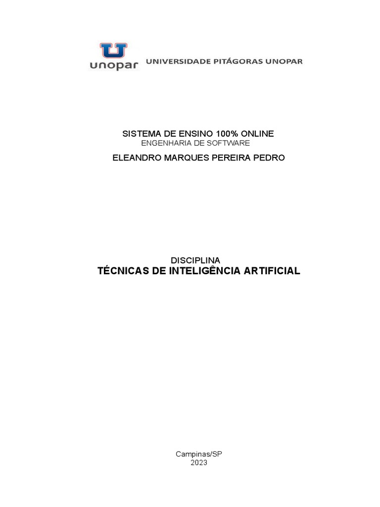 TÉCNICAS DE INTELIGÊNCIA ARTIFICIAL
