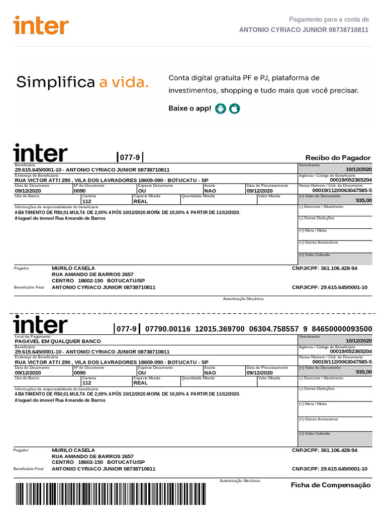 PAGÁVEL EM QUALQUER BANCO 10/12/2020