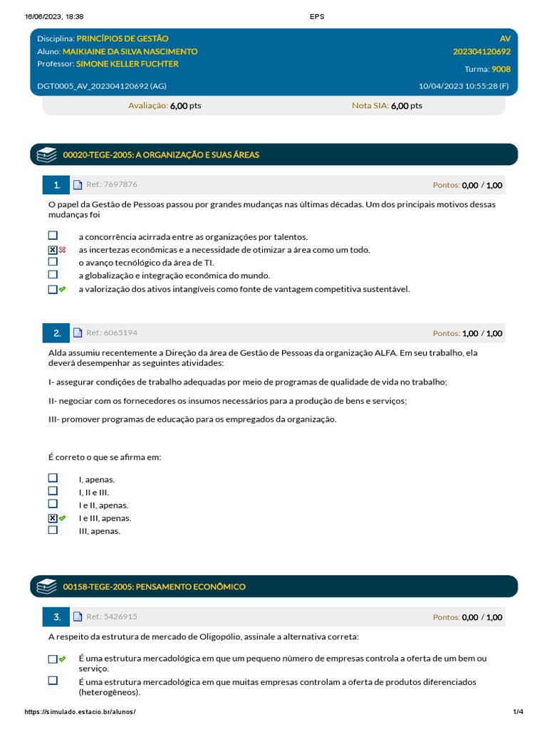 Disciplina: PRINCÍPIOS DE GESTÃO AV