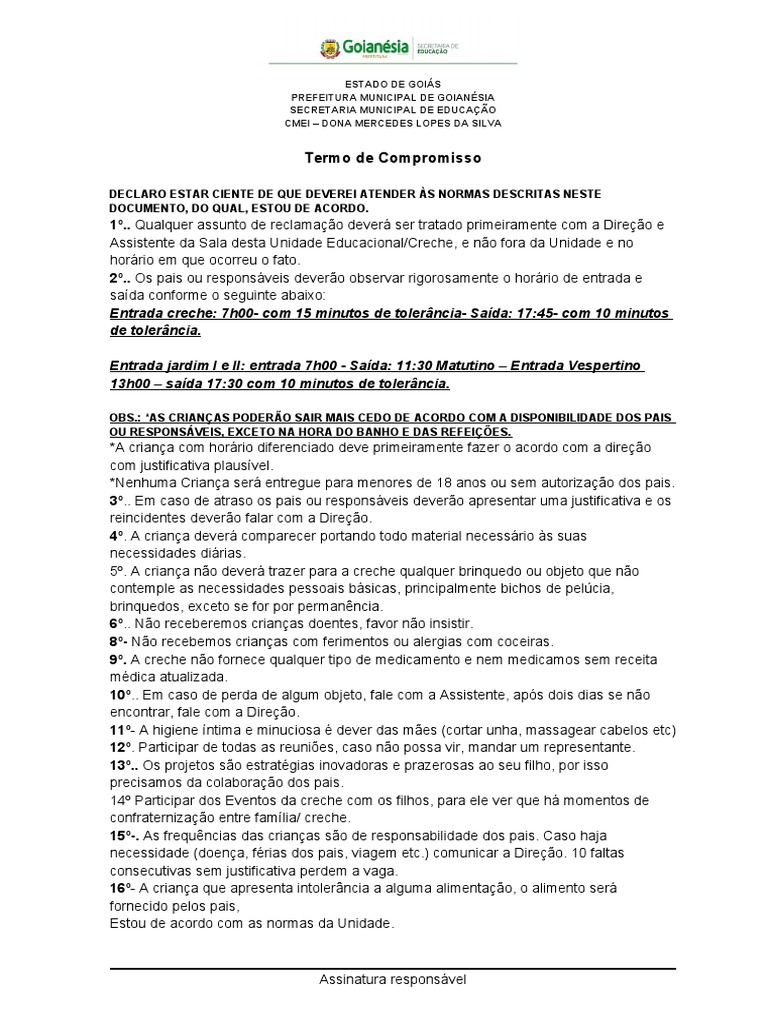 9º. A creche não fornece qualquer tipo de medicamento e nem medicamos sem receita