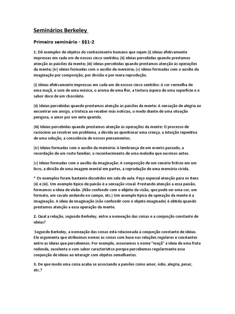4. É possível, para Berkeley, que dois espíritos percebam a mesma ideia? É possível que