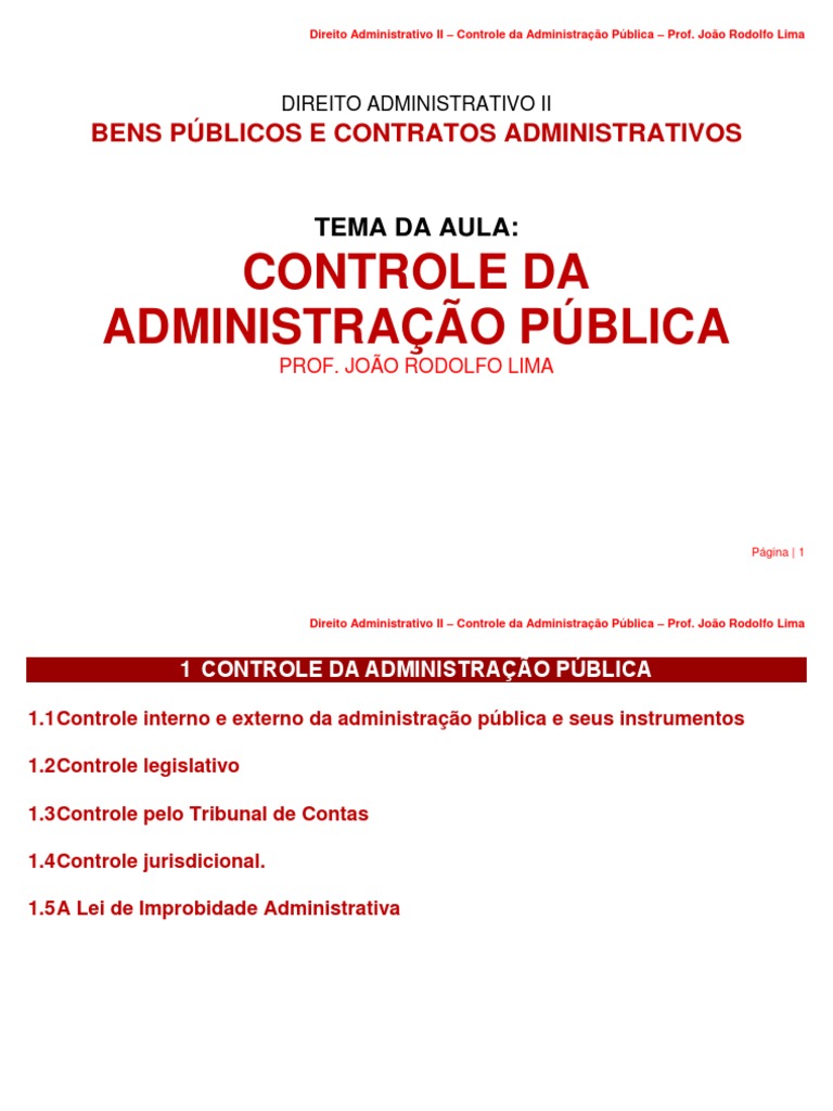 Direito Administrativo II – Controle da Administração Pública – Prof. João Rodolfo Lima