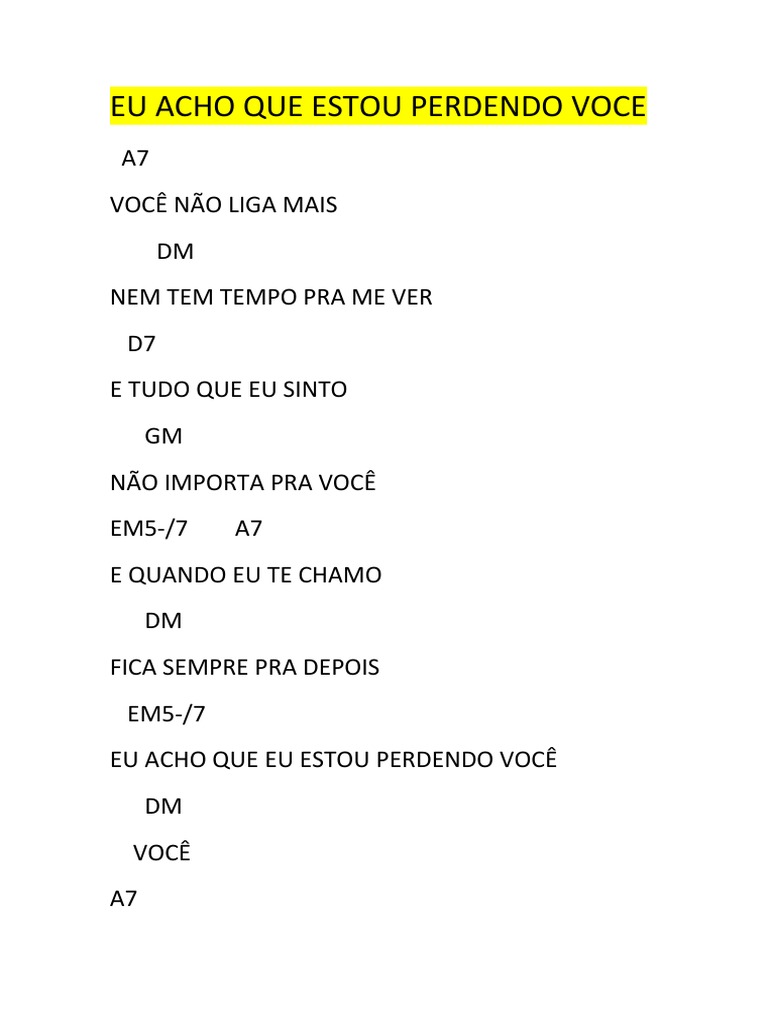 EU ACHO QUE ESTOU PERDENDO VOCE