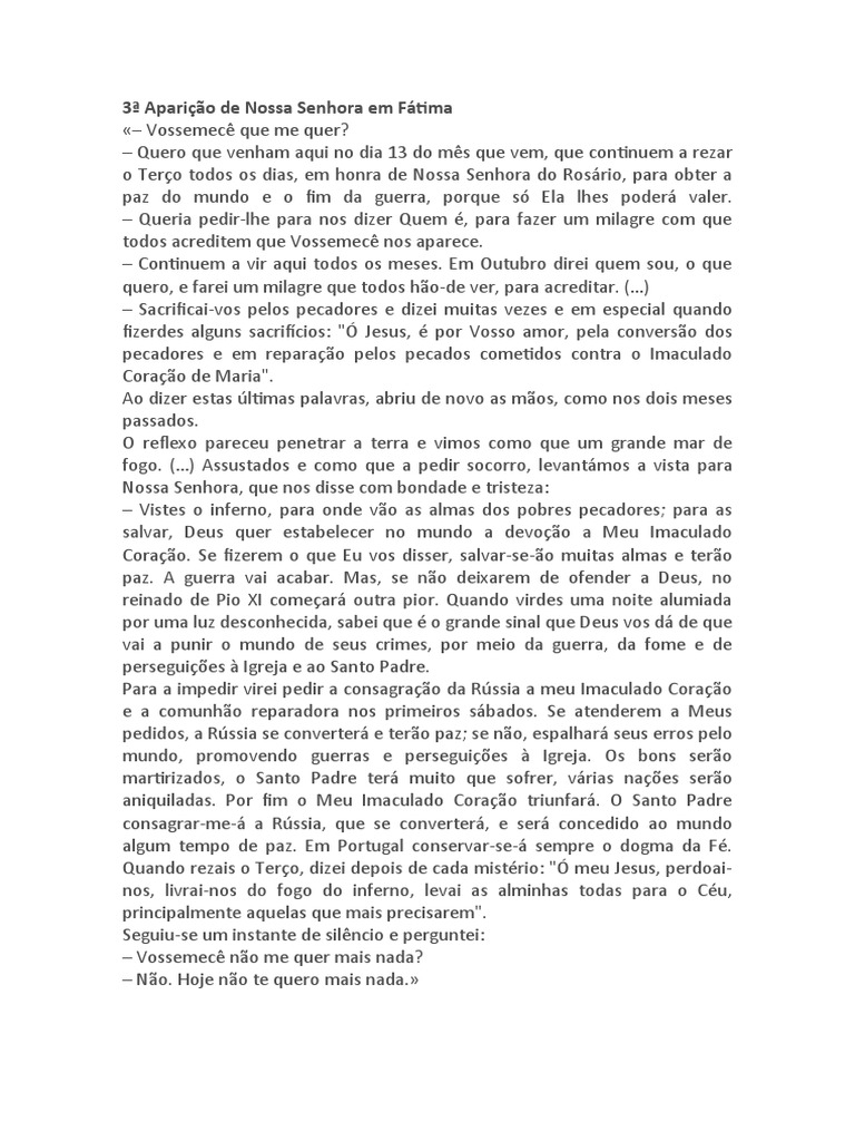 3ª Aparição de Nossa Senhora em Fátima