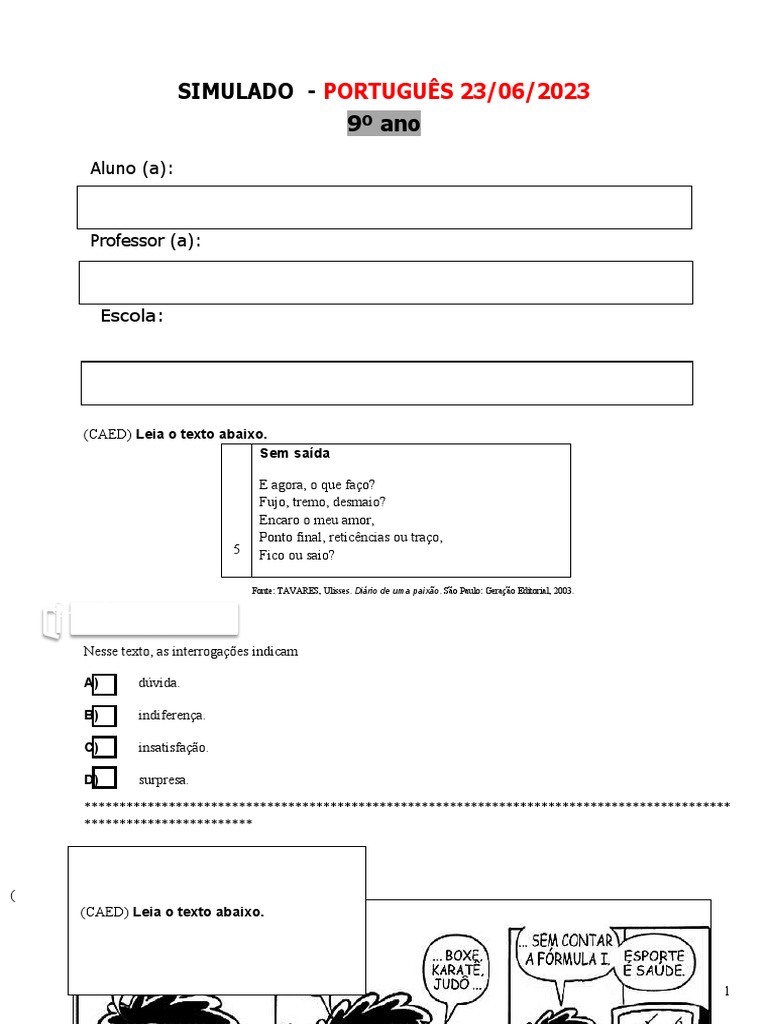 QUESTÃO 04 – D3 Fonte Menino Maluquinho. São Paulo: Globo, 2006, p. 9.